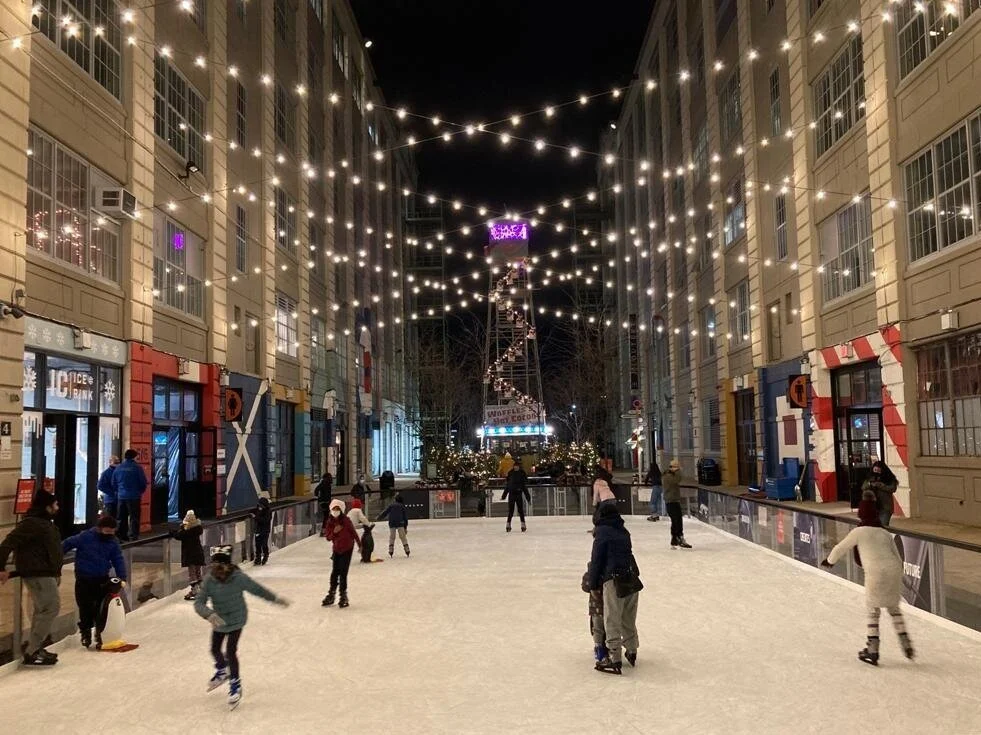 In the Winter, the ice rink is open. It isn’t the largest in NYC, but it definitely has the most food and drink options nearby! We love IC twelve months a year, but they really deck the place out during the holidays.