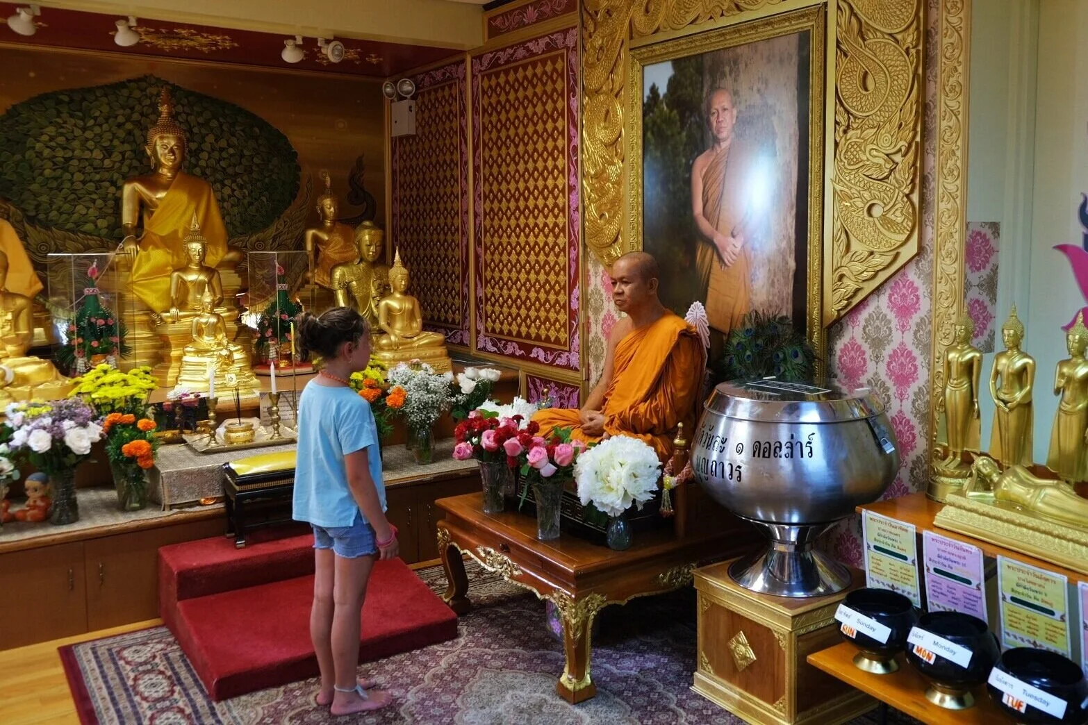 Because it is an active place of worship, there are Monks everywhere. They’re all very warm and welcoming, just don’t challenge one to a staring contest! If you feel funny about bringing noisy kids inside, it’s perfectly fine to walk by without going in.